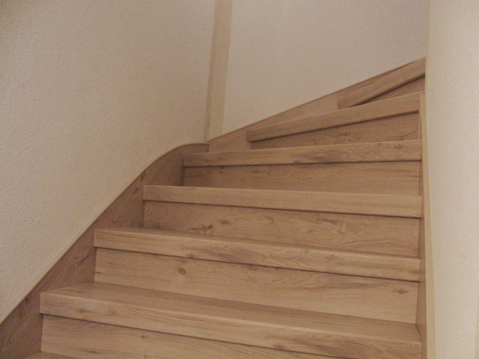 Je mehr man an der Treppe renoviert (also Treppenwangen verkleiden, evtl. Treppengeländer, Podestflächen und Handläufe), um so harmonischer wird im Anschluss das gesamte Erscheinungsbild der "neuen" Treppe sein.